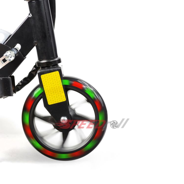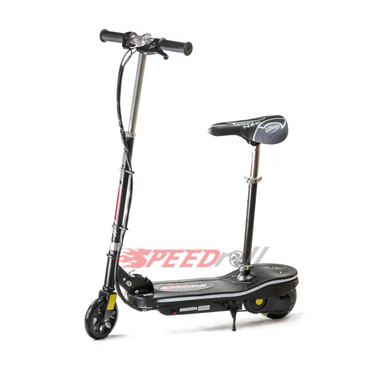 Электросамокат SpeedRoll CD-05S - надежный и практичный электрический самокат с сиденьем. Одна из особенностей данной модели состоит в платформе с подсветкой с разноцветными огнями. Удобная и современная альтернатива велосипедам, которая придется по душе как взрослым, так и детям и подросткам. Мощный двигатель в 120W позволяет электросамокату для детей достичь скорости 12 км/ч (средняя скорость велосипеда) что несомненно порадует тех, кто хочет оперативно и с комфортом добираться до учебы или офиса, а так же просто любителей покататься. Детский электросамокат может проехать до 12 км без подзарядки. Выдерживает до 70 кг, укомплектован ручным тормозом, что обеспечивает максимальную безопасность во время езды. Самокат с сиденьем весит всего 10 килограмм, складывается, поэтому его легко хранить, перевозить и переносить. Сиденье снимается. Прочные полиуретановые колеса с диаметром в 14 см позволяют с комфортом ездить по асфальту, как днем, так и в темное время суток.