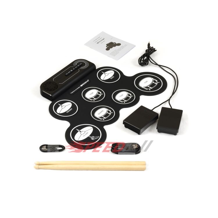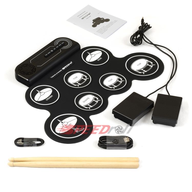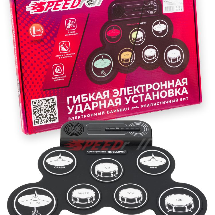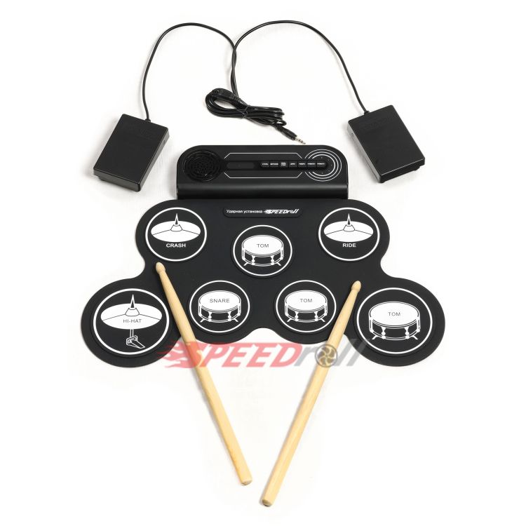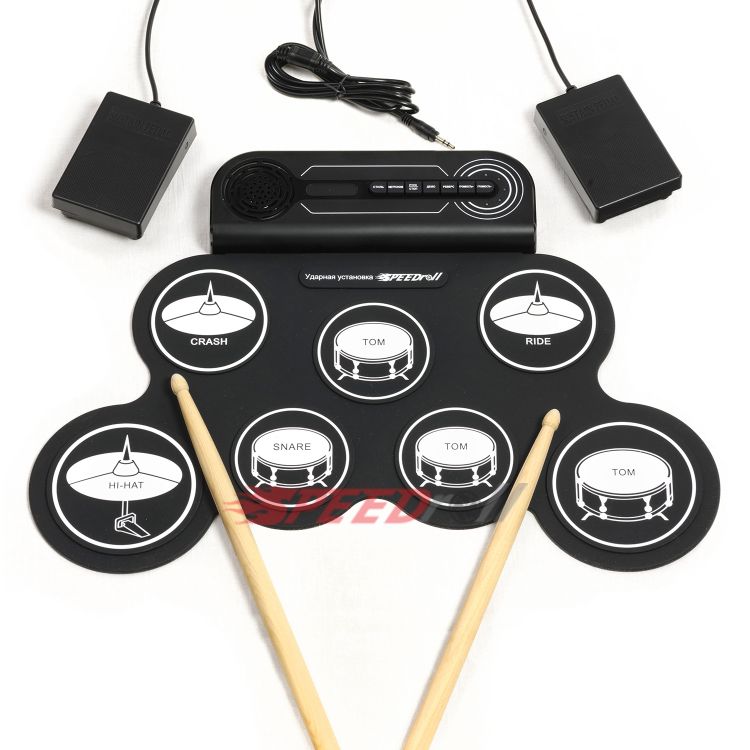 · Полноценная установка: 7 панелей (1 SNARE, 3 TOMS, 1 CRASH, 1 RIDE, 1 HI-HAT) и 2 педали (BASS DRUM, CLOSED HI-HAT) — всё для слаженных ритмов.